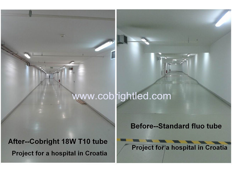 Before this hospital is using 36W traditional fluorescent tube, after years later, the light decay is very bad, and the hospital administration department determined to replace it by LED tube light completely. And fortunately COBRIGHT LED tube light has got the approval. This project will be divided into two steps, firstly, installed the hundreds of these tubes in one hospital in advance. Next to replace the whole system.